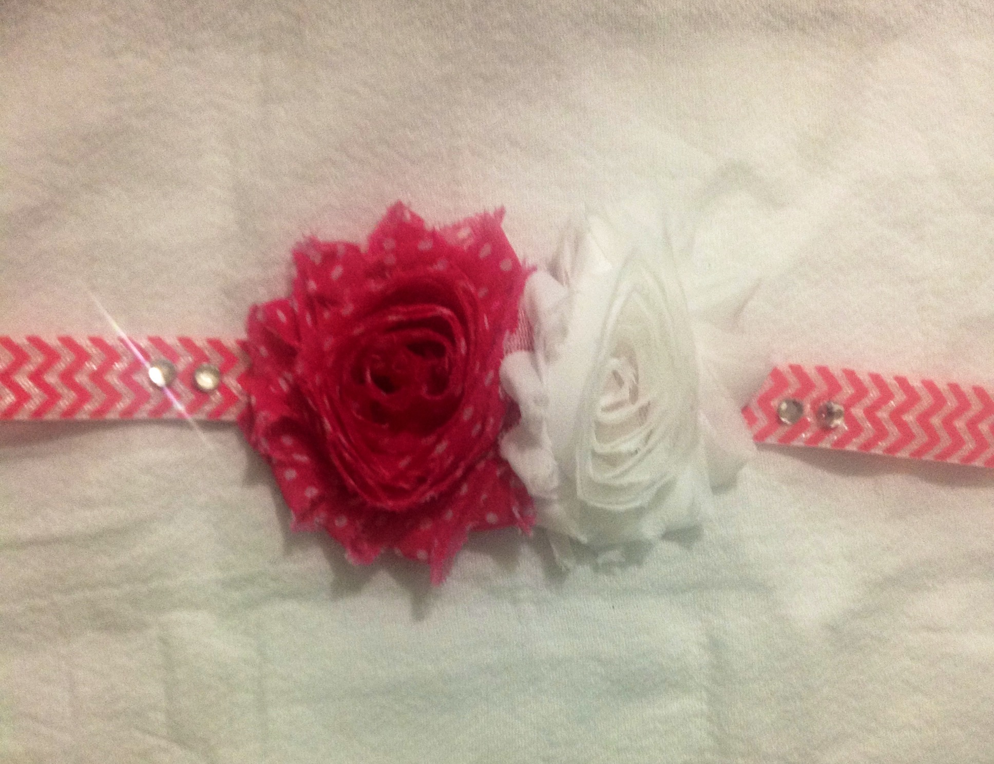 Double shabby flowered headbands with rhinestone accents. Please choose your flower choice and headband choice from the pictures below and include it in your order notes. If no choices are specified, I will surprise you!